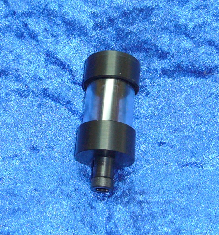 Dieser Behälter wird mit einem Schlauch an die hintere Bremspumpe Angeschlossen. Er besteht aus hochwertigen Alu und einem kompletten Glaseinsatz (Kunststoffglas) so das man jederzeit die Bremsflüssigkeit im Auge hat. Diese Ausführung hier ist Eloxiert in Schwarz. Preis ohne Schlauch