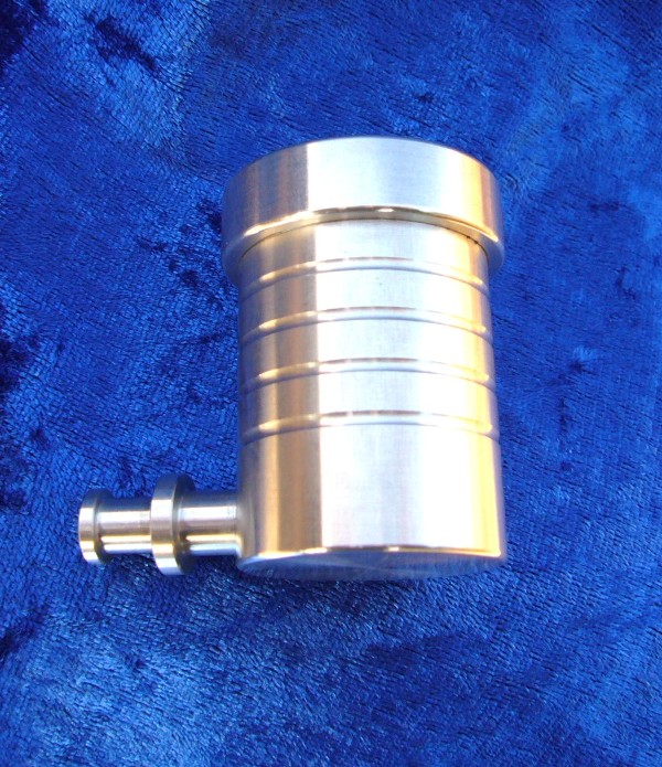 CNC Bremsbehälter für Brembo Pumpen Dieser Bremsbehälter ist für Brembo Pumpen. Die den Schlauch an der Pumpe haben und das Kunststoff teil wo der Schlau angeschlossen ist nur mit einem Gummiring gehalten wird. Er hat einen Seitlichen Ausgang. Der Behälter ist für vorn, kann aber auch in machen Fällen hinten verbaut werten. Er ist aus hochwertigem Alu hergestellt. Hier haben wir das klassische Runde Design. Achtung! Im Lieferumfang ist keine Membrane dabei. Diese kann aus dem 20 ml Brembo Bremsbehälter verwendet werten.