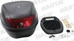 SPEC-X Topcase28l Inhalt, passend für einen Integralhelm, mit Universal-Halteplatte passend für jeden Rohrgepäckträger und für nahezu jede Gepäckbrücke, Deckel abschließ- und abnehmbar durch Einschloss-System, mit großem Rückstrahler auf dem Deckel. schwarz Der Koffer wird mittels einer großen Rändelschraube fest an der Halteplatte montiert, kann daher jedoch auch leicht abgenommen werden.